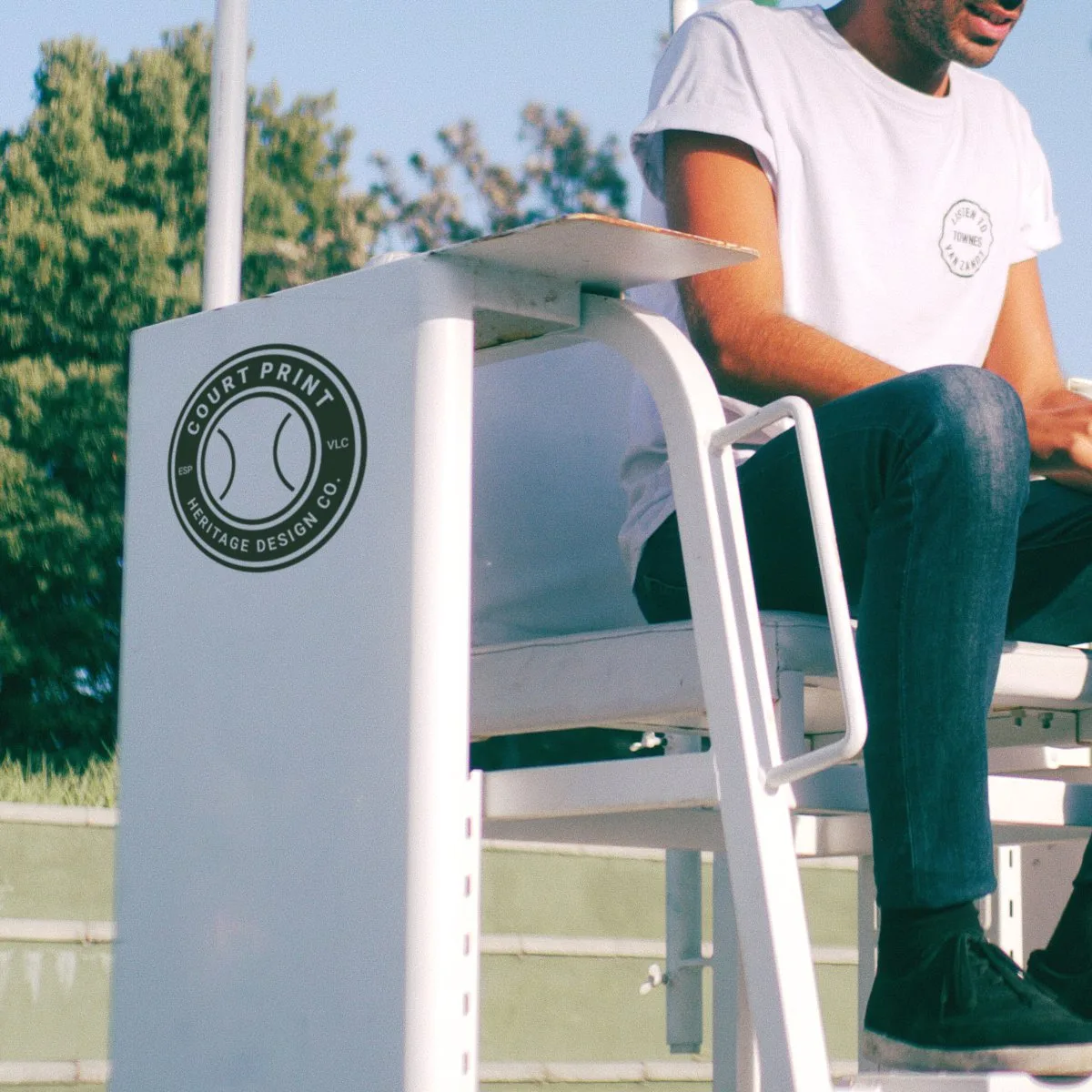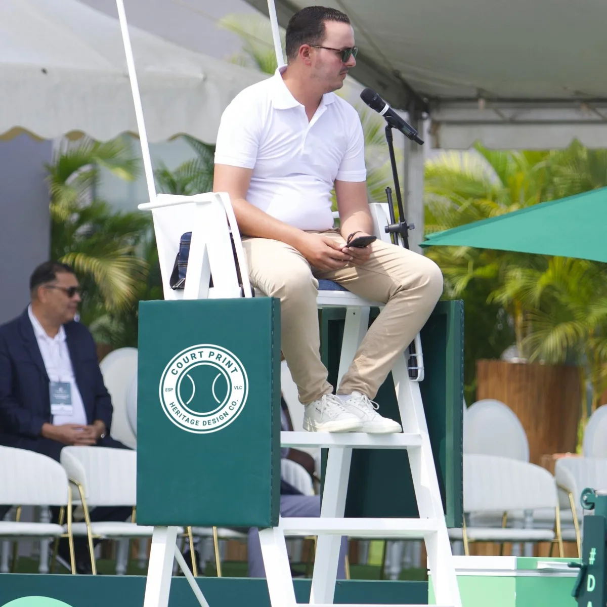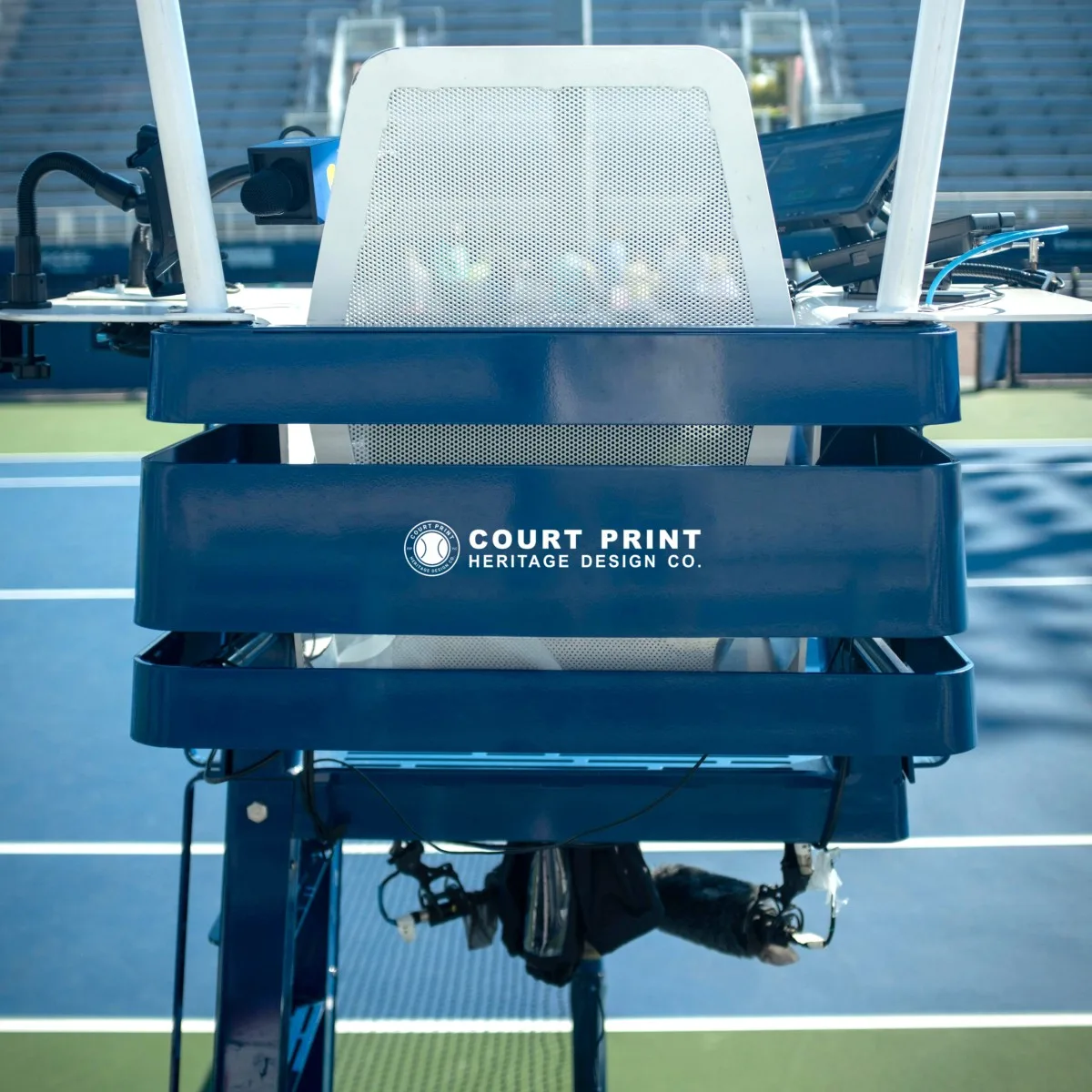 Pegatina personalizable para silla de árbitro en pistas de tenis.